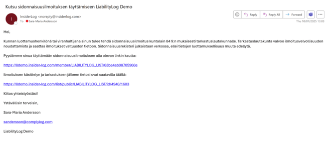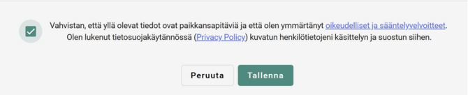 - Vahvista tiedot ja lähetä ilmoitus valitsemalla ”Tallenna”.