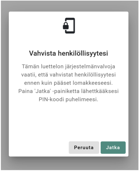 - Tunnistaudu pin-koodin avulla. Koodi lähetetään automaattisesti tekstiviestillä kun