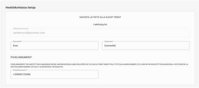 - Täytä ensin henkilötietosi