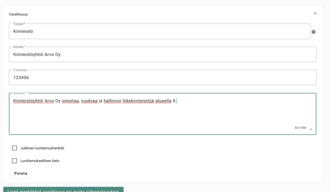 julkisiksi. - Lisää viimeiseksi varallisuus tai muut sidonnaisuudet.