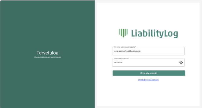 Kirjaudu sisään sähköpostiosoitteellasi, salasanalla sekä PIN-koodilla. Saat
