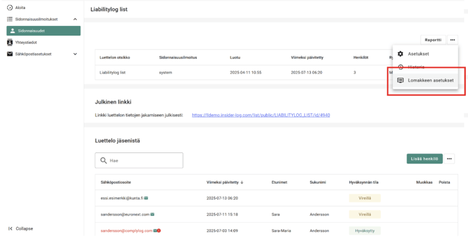- Vaihda osoite (esim. kunta@insiderlog.com)