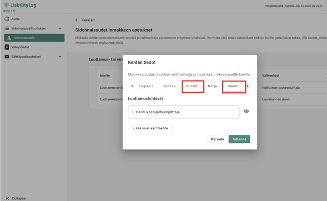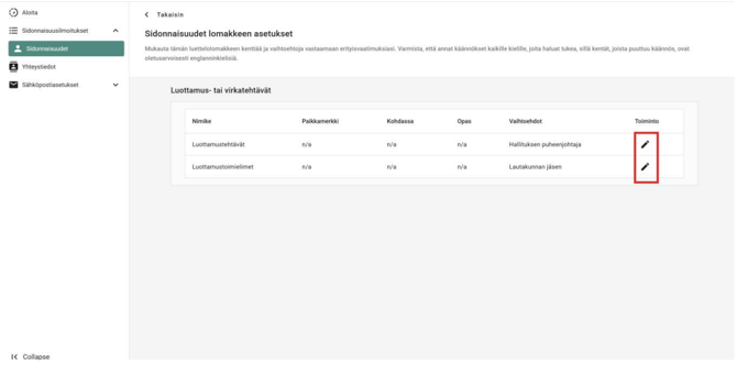 Lisää organisaation luottamustehtävät ja toimielimet suomeksi ja tarvittaessa