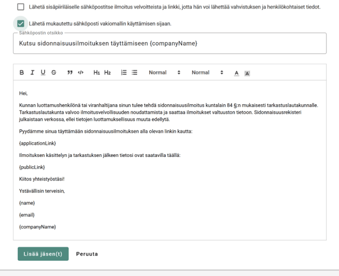 • Kutsua henkilöitä täyttämään ilmoituksia