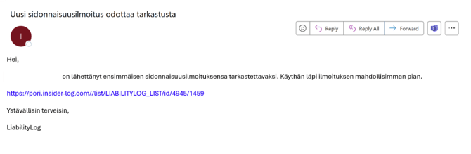 Saat sähköposti-ilmoituksen, kun uusi ilmoitus odottaa tarkistusta.
