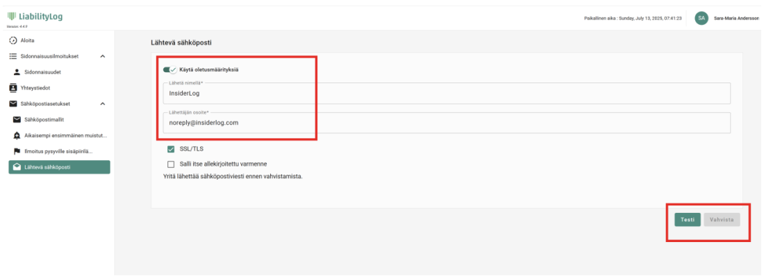 yhteydessä. - Voit halutessasi muuttaa lähtevän sähköpostin osoitetta ja lähettäjän nimeä.