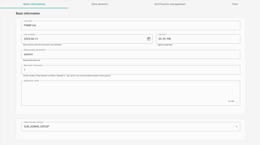 From the settings page, you can change the title of the list, change the admin group managing the list, set the frequency at which you send reminders to insiders who are yet to confirm their details, and add notes.