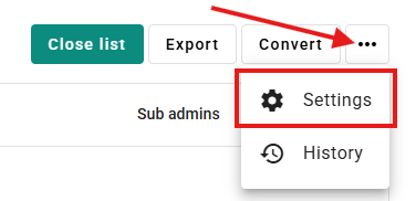 - To access the list settings, click the settings button.