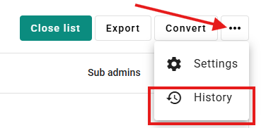 Here, you can find a full audit trail of changes and events made in the list, when they happened, and who actioned them.