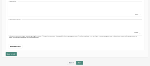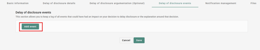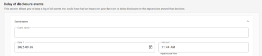This section allows you to keep a log of all events that could have had an impact on your decision to delay disclosure or the explanation around that decision.