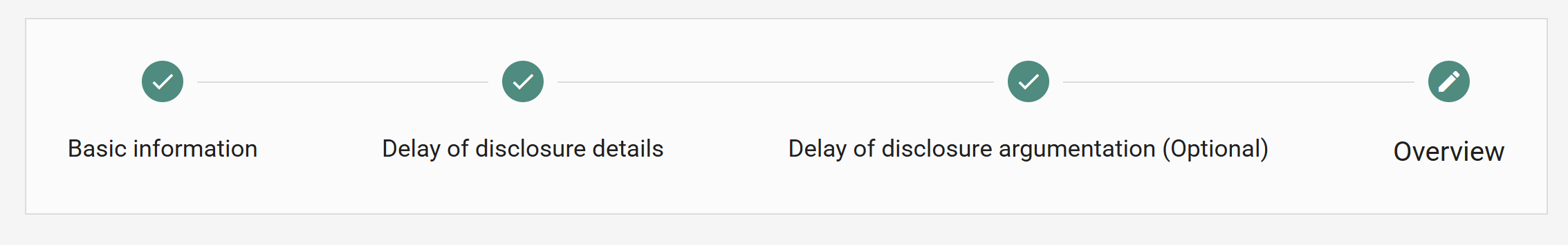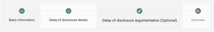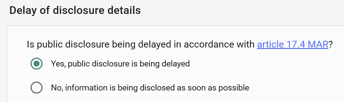 - Answer all the required questions. If your answer is not compliant with MAR’s requirements, the system will tell you that you’re not allowed to delay the disclosure.