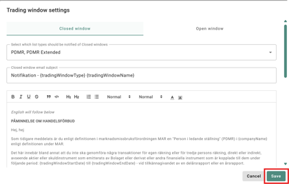 To manage your trading windows and set up reminders, go to Trading Period Management in the left-hand menu.